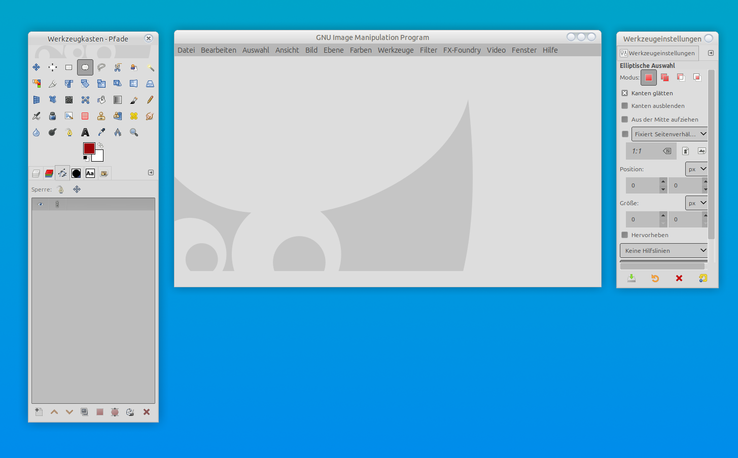 Im Gimp – ich benutze aus verschiedenen Gründen noch den Gimp 2.10.30, das Gesagte gilt aber auch für den aktuellen Gimp 3 – hat es drei Auswahlwerkzeuge und darüber hinaus ein Pfadwerkzeug. Mit diesen vier Werkzeugen kann man im Gimp auch Formen zeichnen: Rechtecke [R], Kreise/Ellipsen [E], freie Formen [F] und Pfade [B].